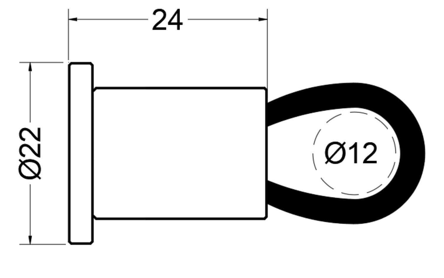 Ø16x21 mm. support - black rubber ring Ø12 mm. Capacity - chromed brassPack